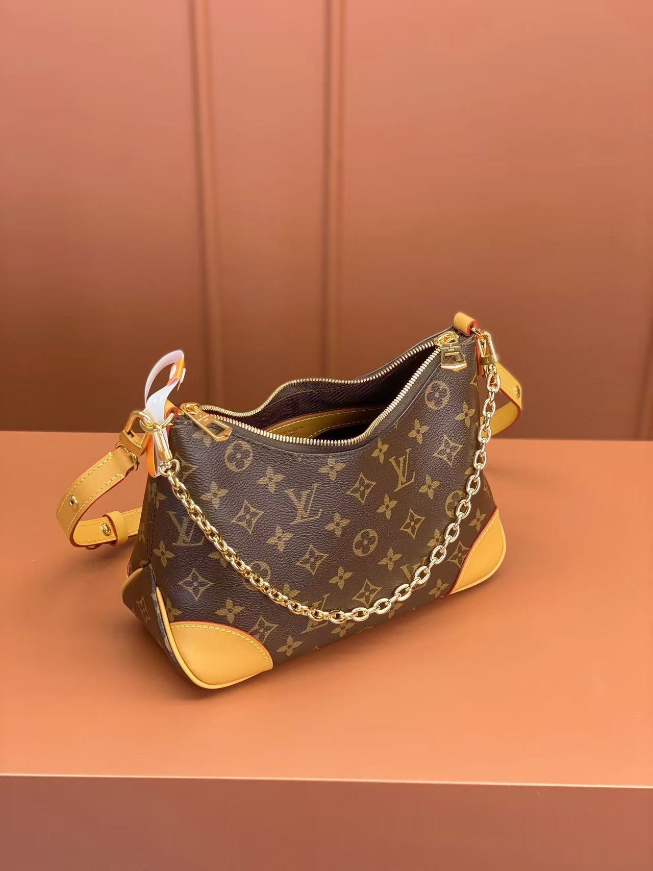 Crafted from classic Monogram coated canvas, this small Boulogne bag features dual zippers and a spacious interior patch pocket large enough for a smartphone. The removable and adjustable strap allows for multiple carrying options—shoulder or cross-body wear—while its removal transforms the piece into a chic chain-handle bag or clutch.